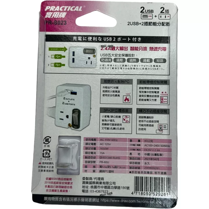 • 2USB+2插節能分配器